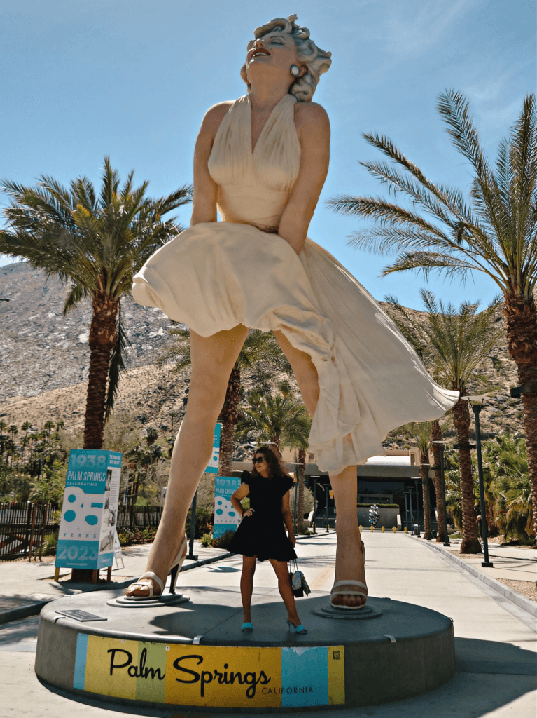Popołudniowa wizyta u Marilyn Monroe? Jasne! Pomnik Forever Marilyn to 8-metrowa „Queen of the Desert”, która wita Cię w samym sercu miasta, przy Museum Way. Jej słynna scena z podnoszoną sukienką z filmu „Słomiany Wdowiec” jest odtworzona z taką precyzją, że aż chce się krzyknąć „Action!” Monroe uwielbiała Palm Springs – to tutaj miała swój dom, z dala od hollywoodzkiego chaosu. A jeśli chcesz poczuć klimat jej miłosnych uniesień, to odwiedź Sandre Acre, jej hiszpańską hacjendę z 1933 roku, gdzie Joe DiMaggio podobno się jej oświadczył. Adres na wszelki wypadek: 953 N Avenida Palmas.