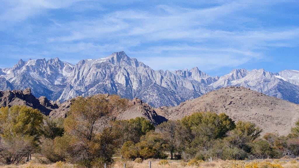 Jadąc drogą w stronę Mammoth Lakes, nie da się nie zauważyć Mount Whitney. Ta góra to prawdziwy gigant, dumnie mierzący 4421 metrów (14,505 stóp) n.p.m. Najwyższy szczyt w kontynentalnych Stanach Zjednoczonych ma szczyty tak postrzępione, że wyglądają, jakby ktoś próbował je wyciąć nożem do chleba. I choć nie mam zamiaru wdrapywać się na jej szczyt (przecież jestem tu dla widoków, nie dla treningu cardio), to widok z dołu wystarczy, żeby poczuć respekt i zachwyt.