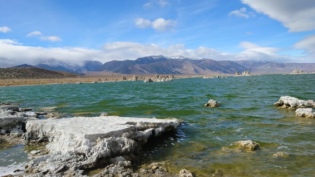 Jedziemy dalej, a tu kolejne jezioro – Crowley Lake. Znowu coś niesamowitego! Wapienne kolumny wyrastają z wody jak starożytne pomniki zapomnianej cywilizacji. Natura chyba trochę się wygłupiała, tworząc te wszystkie dziwaczne formacje. Patrząc na nie, można pomyśleć: „Czy to jeszcze Kalifornia, czy już jakaś alternatywna rzeczywistość?”
